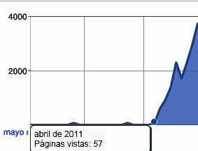 Como en este blog no nos gusta especular o adivinar, te voy a mostrar un ejemplo concreto de cuánto tiempo puede tardar una página web en posicionarse bien en Google sin hacer SEO, sólo con el pasar del tiempo. El caso es específico para una página en Blogger que hice en enero del 2,010, puedes ver que por largo tiempo, esta página no tenía tráfico, ni tenía ventas. Esto fue un periodo de 1 año y cuatro meses donde no se veía nada de crecimiento, estaba como muerta, hasta que empezó a crecer en abril del 2,011.
