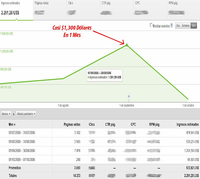 Como he indicado anteriormente, tus ganancias con Adsense dependen totalmente del nivel de tráfico que tenga tu página web. Si tienes mucho tráfico, ganarás mucho dinero, pero si tienes poco tráfico ganarás poco. Aquí te muestro una pantalla de uno de los periodos donde me enfocaba en Adsense (luego me comencé a enfocar más en los programas de afiliados) y logré ganar regular dinero por bastante tiempo. Sólo hay 1 truco y se llama tráfico.